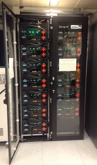 In particular, note how the PV injection varies (the red graph), and how the battery (white graph) as well as the flexible-heating system (green time series) automatically and jointly compensate for these fluctuations, so that the power consumption at the connection point (to the medium-voltage grid) follows the yellow target time series.