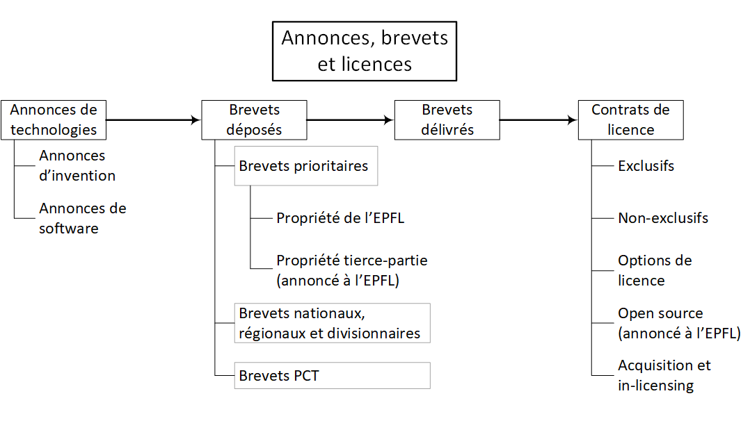 | Brevet dĂ©posĂ© prioritaire, propriĂ©tĂ© de l’EPFL | Brevet dĂ©posĂ©, prioritaire et provisionnel, appartenant Ă l’EPFL (y compris les copropriĂ©tĂ© avec tiers) |
