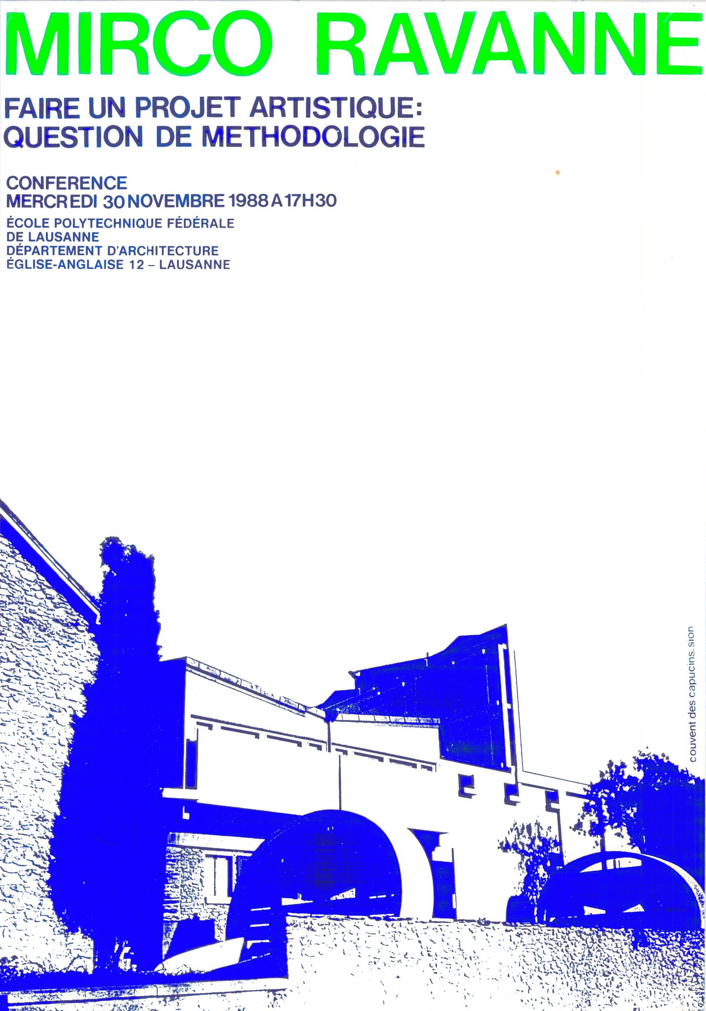 Mirco Ravanne Posted on 30.11.1988 Catégories: Conférences Faire un projet artistique: question de méthodologie