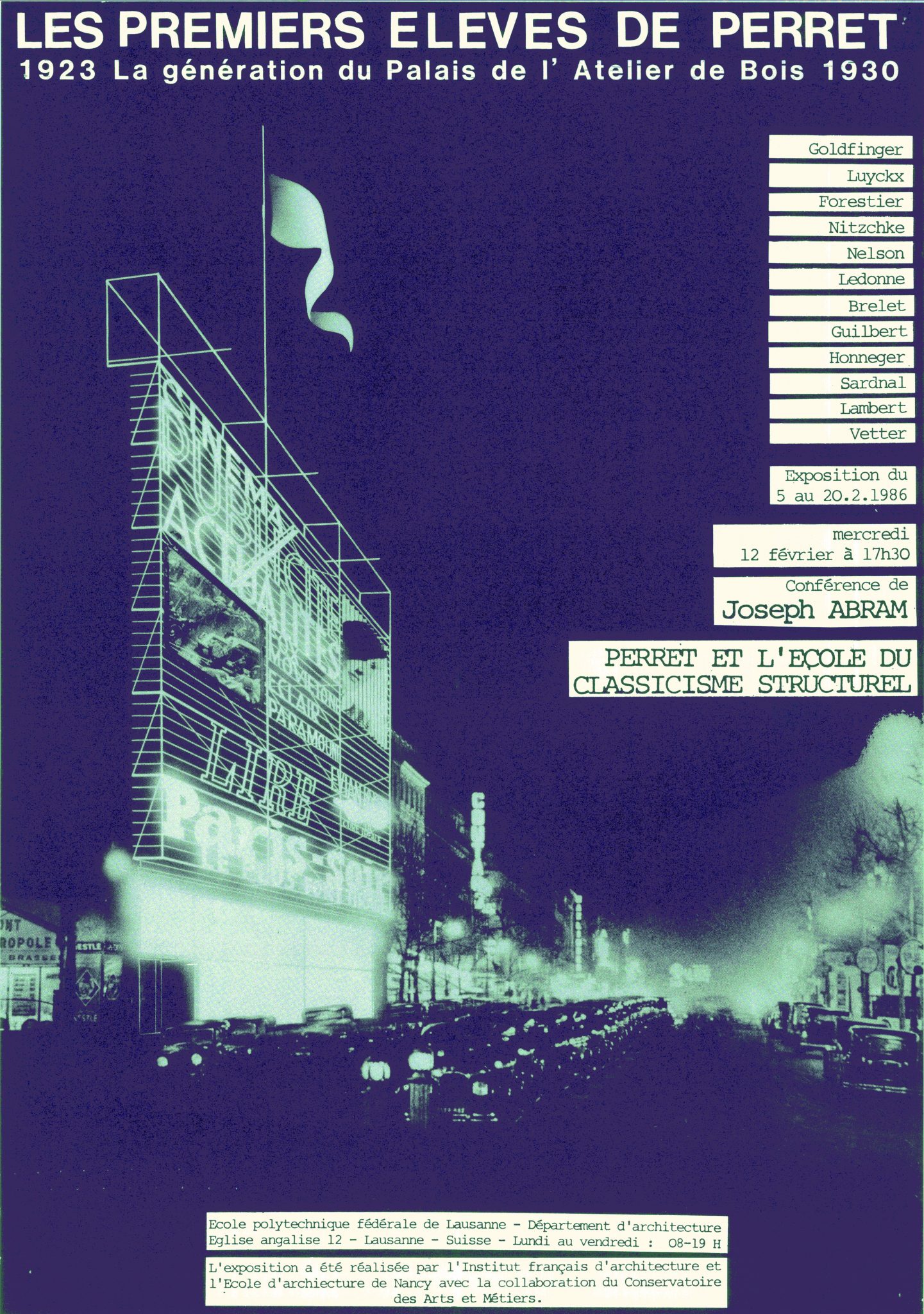Aborder le problème de la réévaluation de Perret par l’étude de son premier enseignement et celle des oeuvres diverses, à maints égards étonnantes de ses premiers élèves, c’est entreprendre un travail historique : replacer une oeuvre dans son contexte économique et doctrinal et dans le cadre des diverses stratégies qui l’accompagnent. A travers la présentation méticuleuse des dessins et des travaux des premiers élèves de Perret en France et à l’étranger, apparaît une question sur l’histoire de l’architecture et sa méthode et surtout une question sur l’architecture d’aujourd’hui. Le projet d’enseignement dans lequel se trouvent impliqués Perret et ses premiers élèves est un chapitre essentiel de cette histoire particulière de la production architecturale. Les expériences déjà riches du nouveau professeur, constructeur reconnu et engagé dans la pratique, ont rencontré dans ce projet didactique l’ambition d’une nouvelle génération.