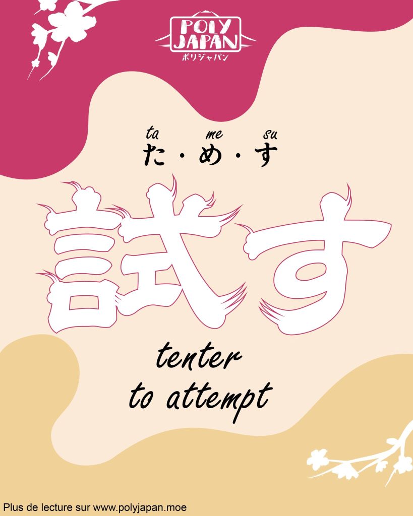 Aujourd’hui, lançons-nous un défi avec un nouveau kanji: 試す (tame(su)), qui signifie « tenter » ou « essayer » !