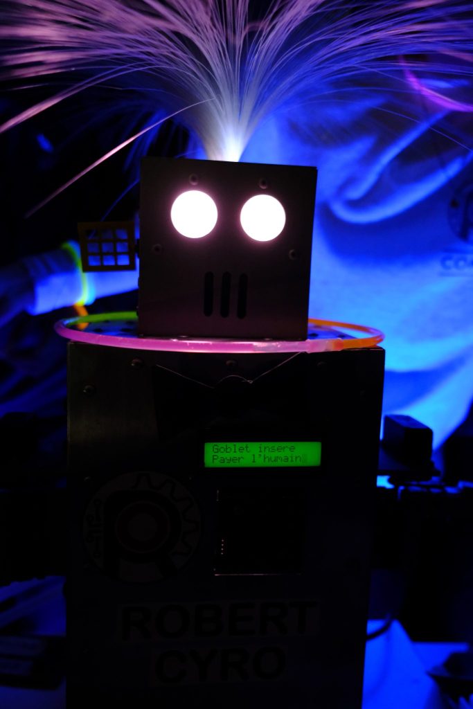 Si vous nous avez découverts sur le campus, vous connaissez sûrement Robert Cyro. C’est notre robot qui sert du sirop 🙂 Nous voulons garder celui-ci comme il est, car c’est une archive importante de notre association, mais il commence à se faire vieux. L’objectif serait de faire un ami pour Robert Cyro qui pourrait reprendre sa place pour qu’il puisse enfin prendre une retraite bien méritée.