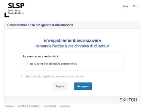 Lors de l’enregistrement, SLSP importe vos données personnelles (noms, adresses, numéros de téléphone) de votre compte SWITCH edu-ID dans swisscovery. Lors de votre inscription, vous acceptez que les données soient transmises à SLSP.