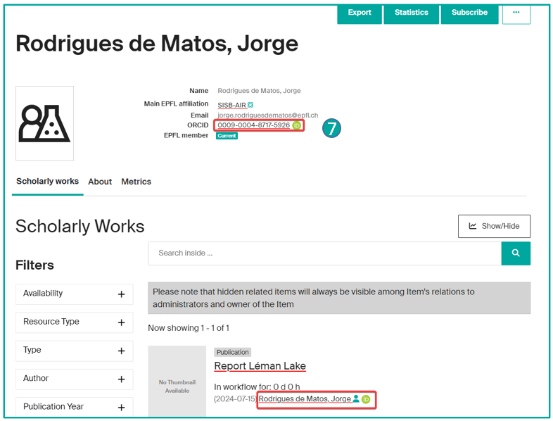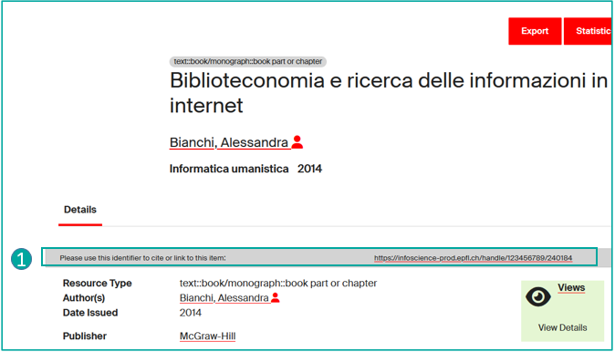 Sur Infoscience, chaque notice a un Handle =>identifiant univoque et pérenne que vous pouvez utilisez pour référencer, citer une publication, un profil de chercheur.euse, un laboratoire.