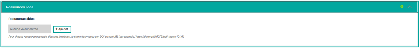 Note : n’oubliez pas de relier votre dataset à la publication correspondante (article…) si celle-ci est disponible, dans Infoscience ou une base externe (Voir page sur les Relations).