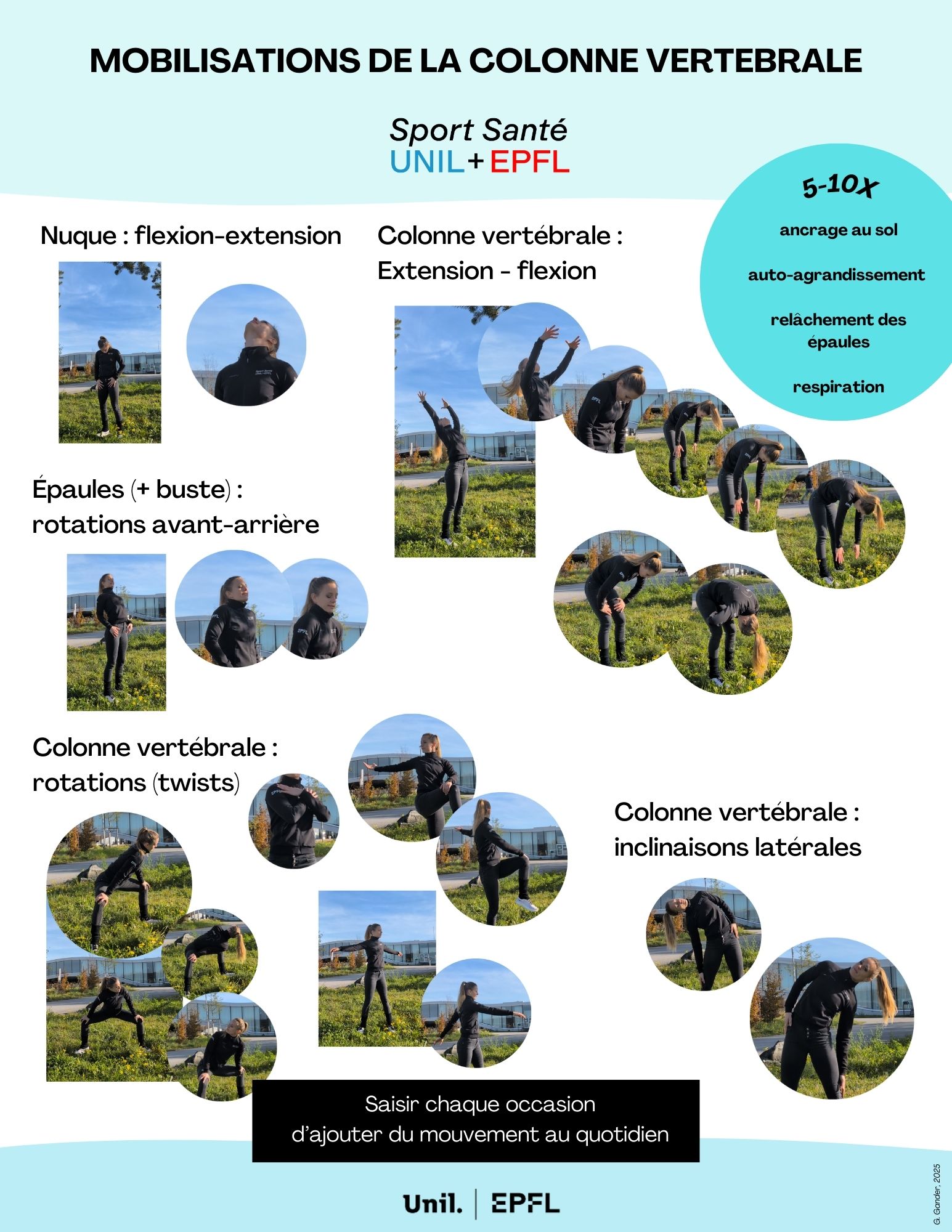 Thanks to Gaëlle Gander from the UNIL+EPFL Sport Health Service for these suggestions and the illustration below.