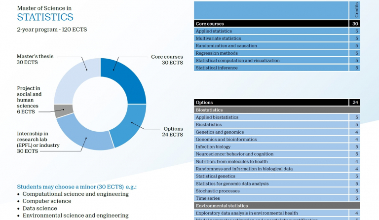 Upon completion of their Master’s curricula, students obtain an EPFL Master of Science MSc in Statistics. The diploma also gives graduates the right to use the title of EPF qualified Statistician.