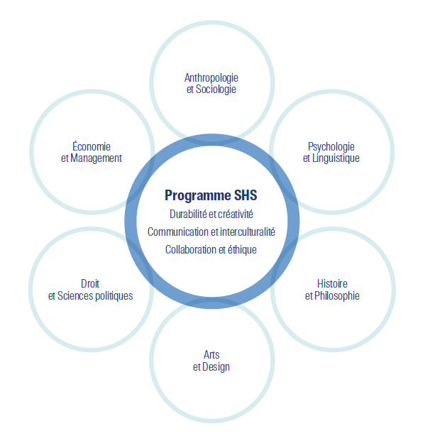 Le Programme SHS est structuré en trois étapes: un premier bloc de deux semestres (BA2 et BA3), intitulé « SHS appliquées », initie les étudiantes et étudiants à l’interdisciplinarité en appréhendant, sous les angles techniques, scientifiques et sociaux, des problématiques actuelles mondiales. En BA2, tous les étudiants et étudiantes suivent un seul et même cours commun sur le thème de la durabilité. En BA3, ils abordent des thématiques liées à des enjeux mondiaux auxquels la science est actuellement confrontée comme : la santé, la communication, l’IA, l’énergie, l’éthique…