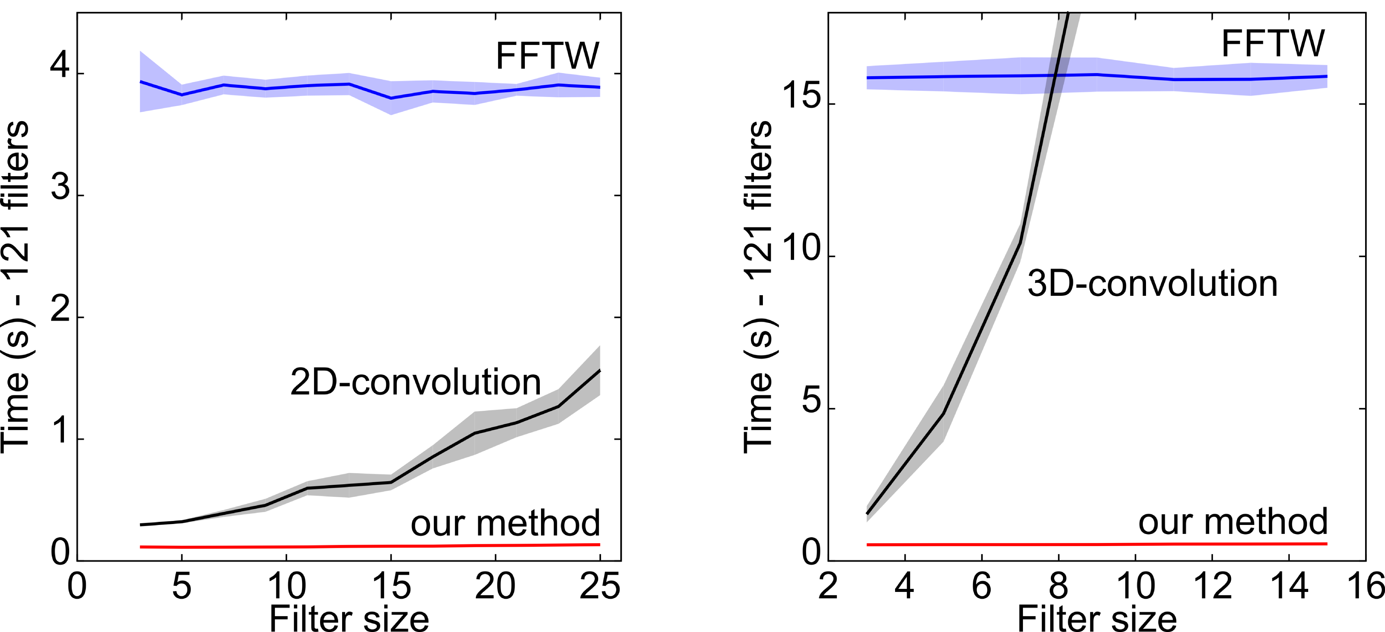 The computational costs linked with the use of a learned filter bank are, however, still considerable, as it requires the convolution with many non-separable filters.