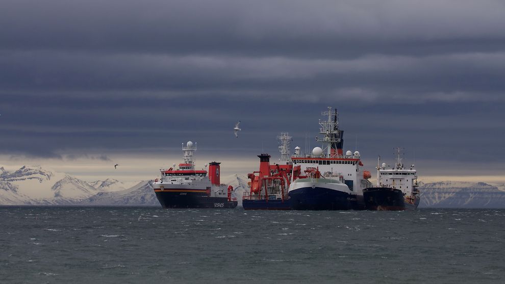 On 2 June shortly before midnight, we reached the marginal ice zone (MIZ), a narrowly defined area as we had seen on satellite images before. Once we entered the MIZ, it just took about one day to meet the research vessels Sonne and M.S. Merian in Adventfjorden near Longyearbyen.
