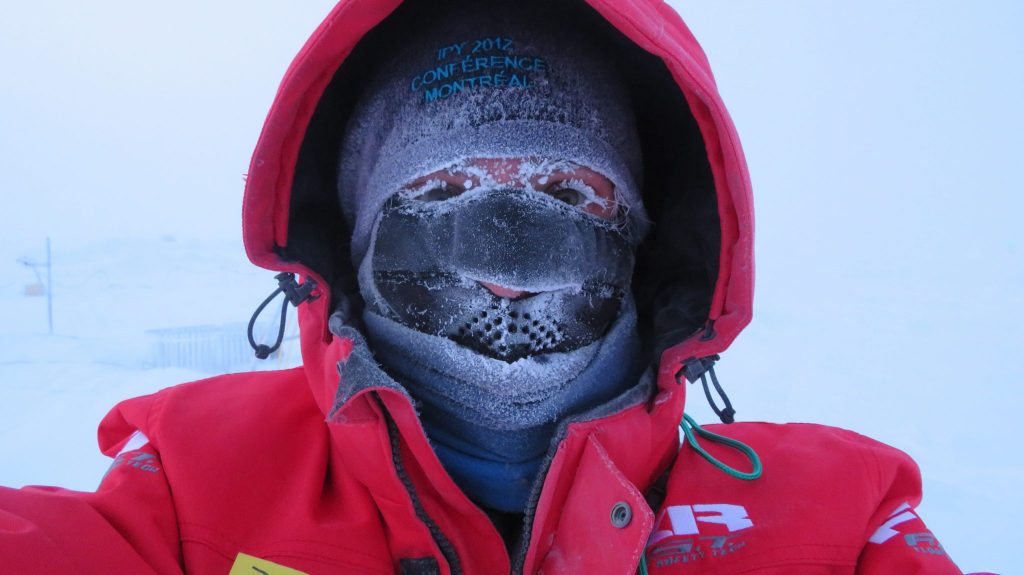 Having spent a month mostly inside a ship, the Kapitan Dranitsyn, starting to work in extremely cold temperatures outside is not easy. The slightest wind will cause any bear skin to get cold immediately. For that reason, we were equipped with lots of polar clothing, including a red survival suite, which is basically an overall that provides flotation, many layers of fleece and wool to wear underneath, a number of different hats and face masks, and very warm boots. Walking about in such a dress feels rather clumsy, but it was worth it, since no team member suffered from any serious cold injury. However, the warm clothing is only effective for so long, and we had to split our outdoor working time into roughly 2 hour slots to stay safe.