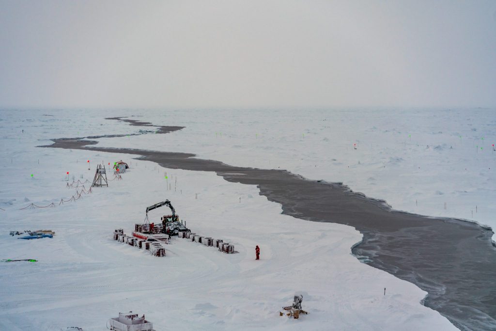 Even though lead formation meant more trouble than none to our installations on the ice, it is a process that we actually came to study. After these first two events, we slowly got more and more accustomed to the dynamics of the ice and found ways to make things work despite broken power lines and interrupted roads. Open leads contribute a significant amount of water vapor to the atmosphere in winter. When they open and steam with the sun is at the right angle, it even looks like the Arctic is on fire. More humidity in the air means that the atmosphere has a different radiative transmissivity which in turn is important for the energy balance.