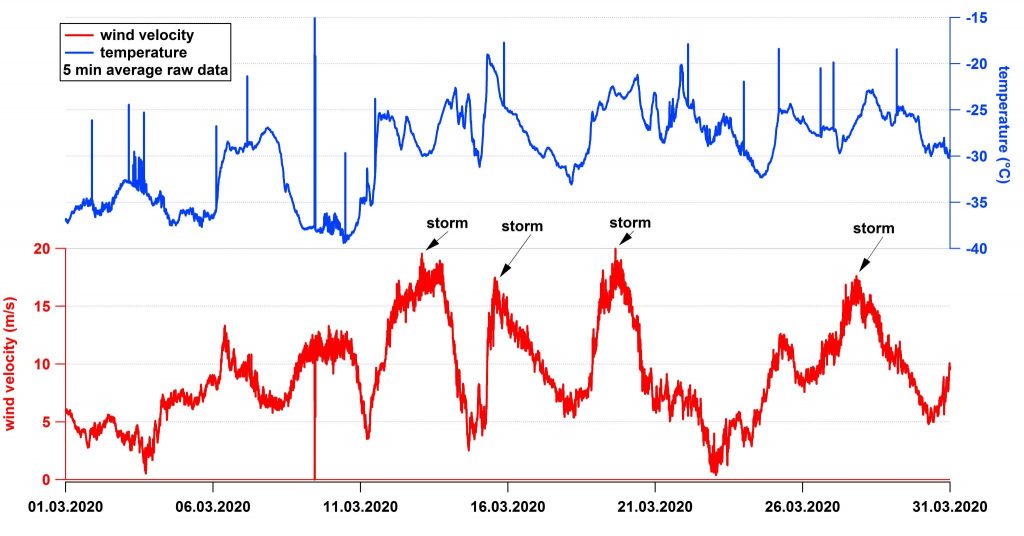What a welcome by the winter Arctic! Not enough that temperatures plummeted to below -40 °C with a wind chill of -60°C during the first week of March when we arrived at the MOSAiC central observatory (CO). Exactly six days after we had taken over for leg 3, the CO suffered several major cracks that soon opened into leads. Naturally equipment and infrastructure had to be rescued. In addition, several days of storms made it almost impossible to work outside due to the blowing snow causing low visibility, a condition in which spotting polar bears at a safe distance is not possible. The month of March felt definitely like a rollercoaster ride to us. But let’s take the events one after the other…