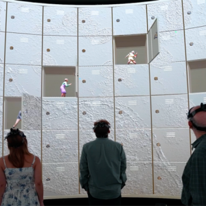 - A Visualisation Engine: a set of immersive, interactive visualisation resources, including several state of the art 360-degree 3D systems. This includes a new LED visualisation engine at HKBU with a circumference of approx. 2500 cm utilising 400 flat LED modules each 48cm x 48cm, where the angle between adjacent displays is 7.2 degrees and a pixel pitch that provides for high-resolution stereoscopic cognition.