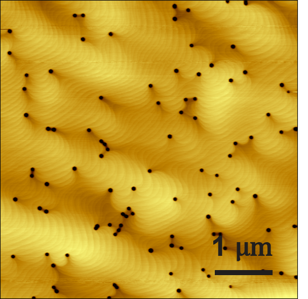 1. Atomic force microscopy image of a GaN epilayer grown on sapphire with an embedded single InGaN/GaN QW showing V-shape defect terminations.