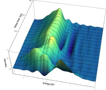 One of our interests is the development of efficient methods for computing ultrafast time-resolved spectra (Wehrle et al 2011,Sulc and Vanicek 2012,Sulc et al 2013,Zambrano et al 2013,33]. The figure shows a time-resolved stimulated emission spectrum of NCO computed with the Cellular Dephasing Representation (CDR) using a single (!) semiclassical trajectory (Sulc and Vanicek 2012):