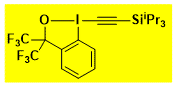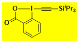 TIPS-EBX Decomposition starts: 135 °C DSC data: peak height: 2.3 W/g, peak width: 10.7 °C, peak max: 198 °C, energy: 497 J/g No shock sensitivity observed No explosion in more than 5000 experiments Comment: most often used EBX reagent, strong nucleophilic bases may lead to decomposition by silyl group removal – |