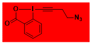 ABZ Decomposition starts: 143 °C, 268 °C DSC data: peak height: 25 and 1 W/g, peak width: 1.2 and 37.7 °C, peak max: 159 and 308 °C, energy: 965 and 380 J/g Shock Sensitive. Confirmed by Fallhammer test, > 5 J Friction Sensitive: negative for a friction load of 360 N in Alox plate No explosion in about 100 experiments. Comment: Most stable analogue of Zhdankin reagent, with only few residual shock sensitivity. Comparable reactivity in photoredox and metal catalysis, but thermal initiation requires higher temperature. Solubility limited in some organic solvents. For a detailed discussion, see: ChemRxiv – |