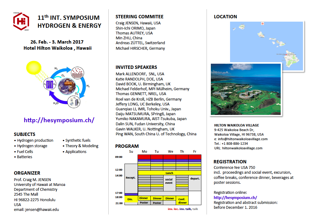 22. – 27. January, 2023 15th INT’L SYMPOSIUM HYDROGEN & ENERGY Chair: Andreas ZÜTTEL Conference Manager: Ivana SUTER SEEBLICK HÖHENHOTEL |