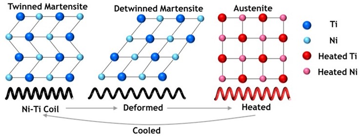 Why do SMAs consume so much power? They are thermal responsive active materials. they generate contraction due to phase change (microscopic lattice re-arrangement) as shown in Fig04, transforming thermal energy into kinetic energy. This energy conversion is usually accompanied with large heat loss, specifically, heat convection into air. Until now, the most commonly used SMAs are Ni-Ti alloys, with energy-efficiency as low as 3%.