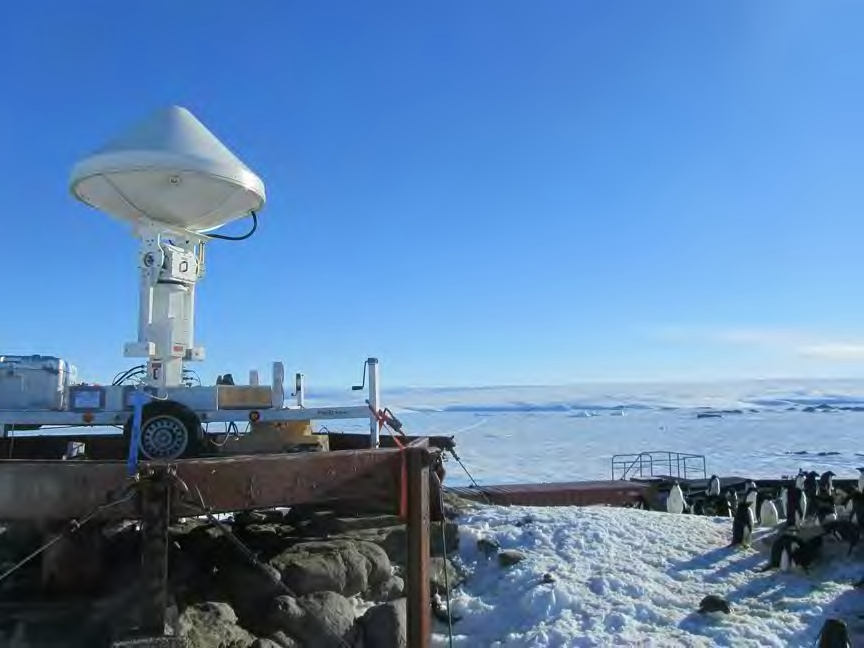 LTE’s radar is installed on the highest point of the Pétrels Island on which DDU is implemented, to have a clear view of the surroundings. The Antarctic ice sheet is visible in the background of the picture below.
