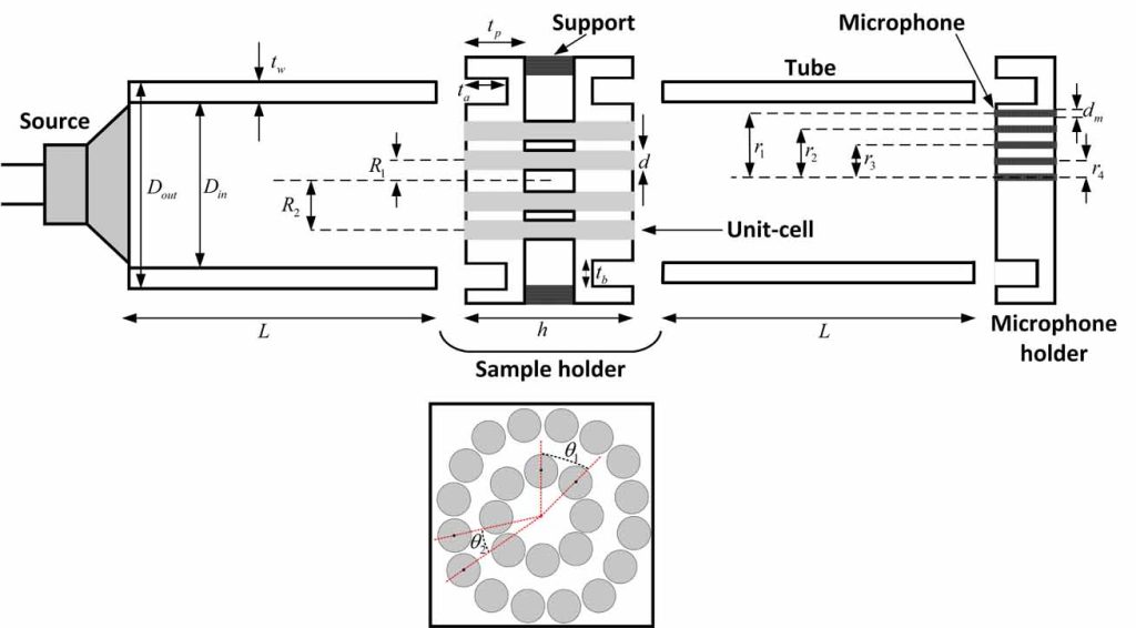 From the Greek ΌΔÏÎŹ â meta, meaning âbeyondâ, acoustic metamaterials are artificially structured materials designed to exhibit extraordinary acoustic properties not typically found in nature â such as negative bulk modulus (K), negative mass density (Ï), and even negative refractive index (n). These remarkable properties allow sound to be controlled in ways that conventional materials cannot achieve.