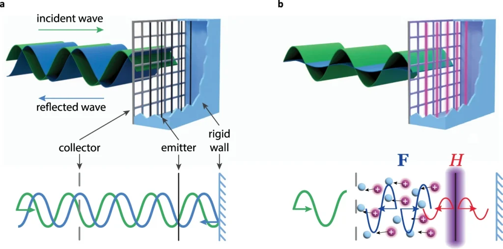 Instead of relying on a heavy membrane to cancel out noise, plasmacoustic metalayers take a completely different approach by using air itself as the active sound-absorbing medium. The plasma transducer consists of two metallic electrodes (see here a more detailed description of the plasma speaker) with a thin layer of air between them. This air layer is known as the plasmacoustic metalayer.Â