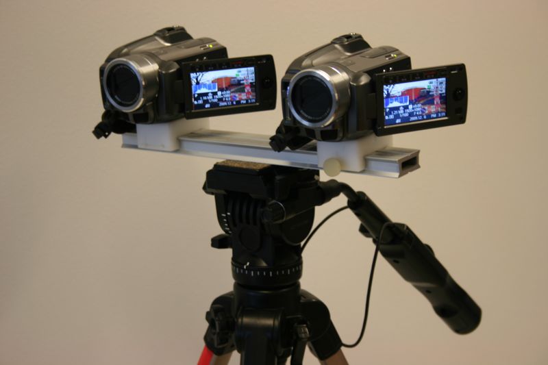 Considering the different aspects mentioned above, we have built the stereo camera setup shown in the figure below, which consists of two identical HD camcorders (Canon HG-20) and an adjustable stereo mount.