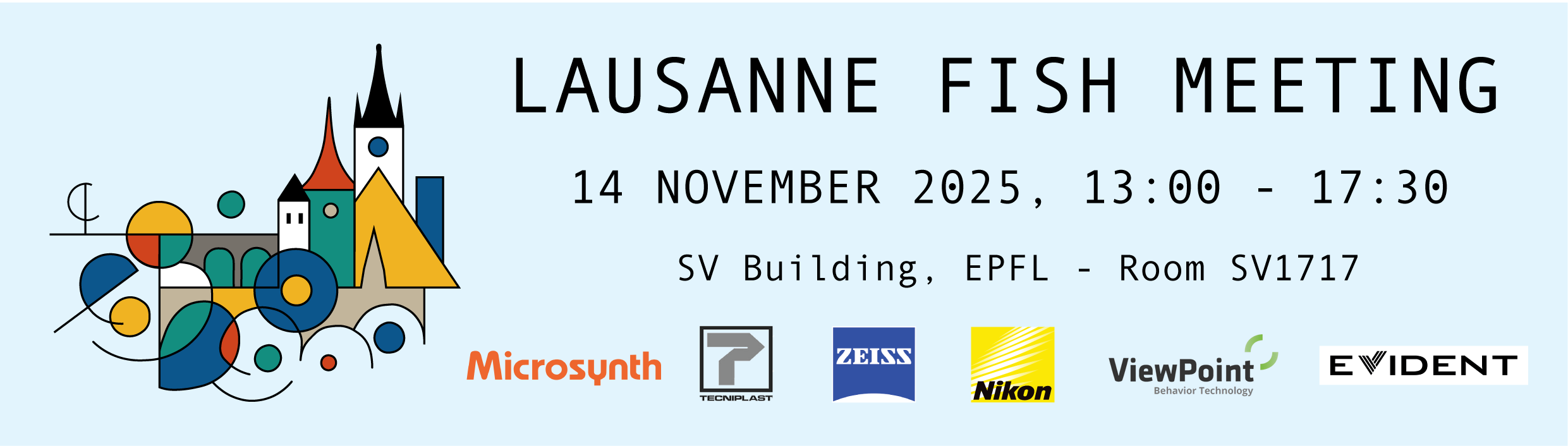 Andrew Oates & Johannes Larsch are organizing the 5th Lausanne Fish Meeting that will be held Friday November 14, 2025 from 1:00 PM to 5:30 PM in the SV1717 room at EPFL. It will be followed by an apero in SV Hall.