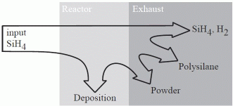 Keywords: silane consumption efficiency, powder, secondary-gas phase reactions, plasma transients