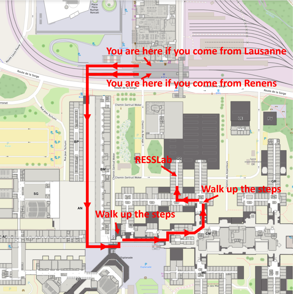From “EPFL” station (Metro M1) to RESSLab