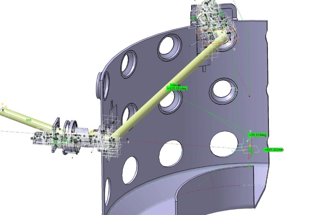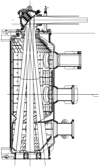At TCV, the ITS diagnostic uses nanosecond-scale laser pulses from Nd:YAG Q-switched lasers operating at 1064 nm with repetition rates of several tens of hertz. The lasers pass vertically through the vessel. Three camera lenses on a horizontal port collect the scattered light over the entire height of the vacuum chamber (see the figure ITS at TCV) into a fiber bundle. More than a hundred polychromators are used to analyze the scattered light and retrieve the plasma’s thermal properties. Real-time analysis of the signals, with latency below 0.5 ms, enables advanced control of the plasma discharge.