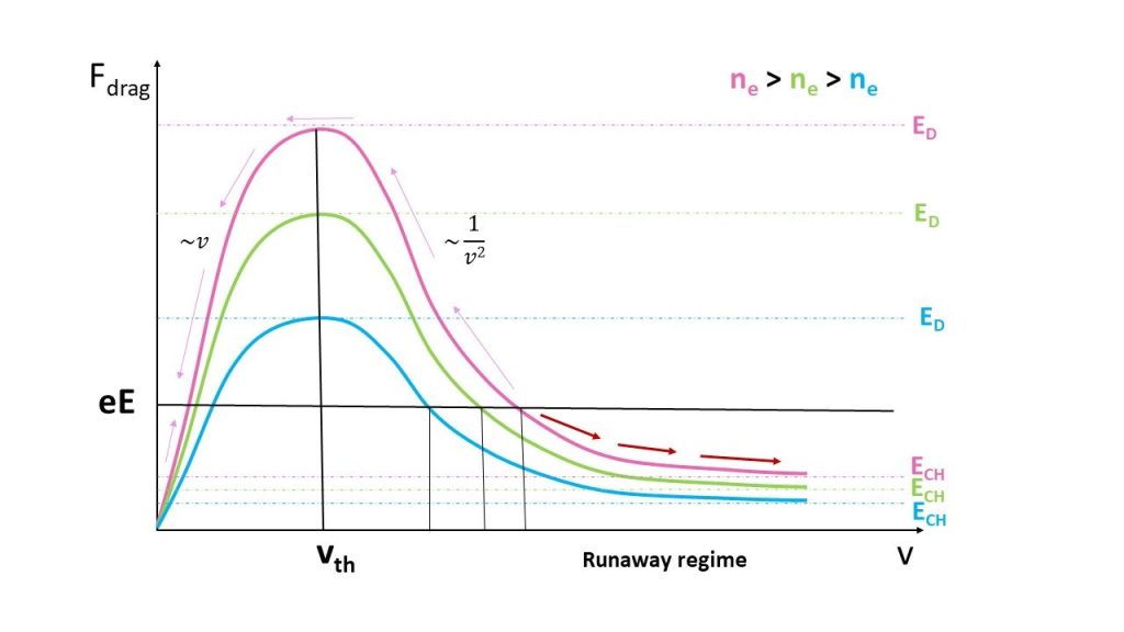 - Dreicer Mechanism: When disruption-induced electric fields exceed the critical Dreicer field, they overcome collisional drag, accelerating electrons continuously to relativistic energies.