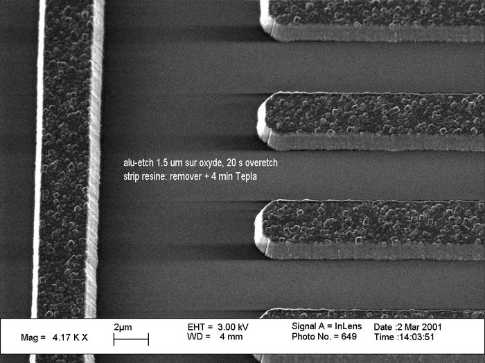 | Al | Al_etch | PR | >1:1 | 0.2 to 0.5 Si: 0.215 SiO2: 0.08 | Cl2/BCl3 |
