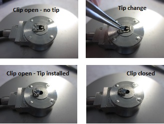 The step by step procedure below describes how to change the tip. The procedure is illustrated by the photos gallery above.
