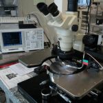 This probe station is coupled to an AGILENT Semiconductor Parameter Analyser 4155C to perform DC-like characterization of various microelectronic devices under test (resistance, diodes, transistors). .