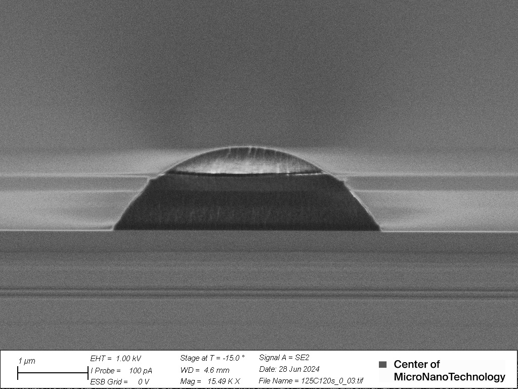 The ratio between height and width of the feature to reflow has a great impact on the result. A threshold is found to be at 1:3 to round the structure / lower the sidewalls slope as presented in the image below.