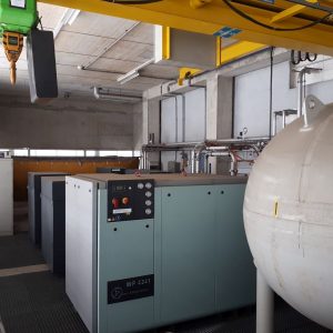 three compressors with a maximum flow of 50m3/h each. This capacity corresponds to an evaporation of 200 l/h of liquid helium. Maximum pressure 200bar