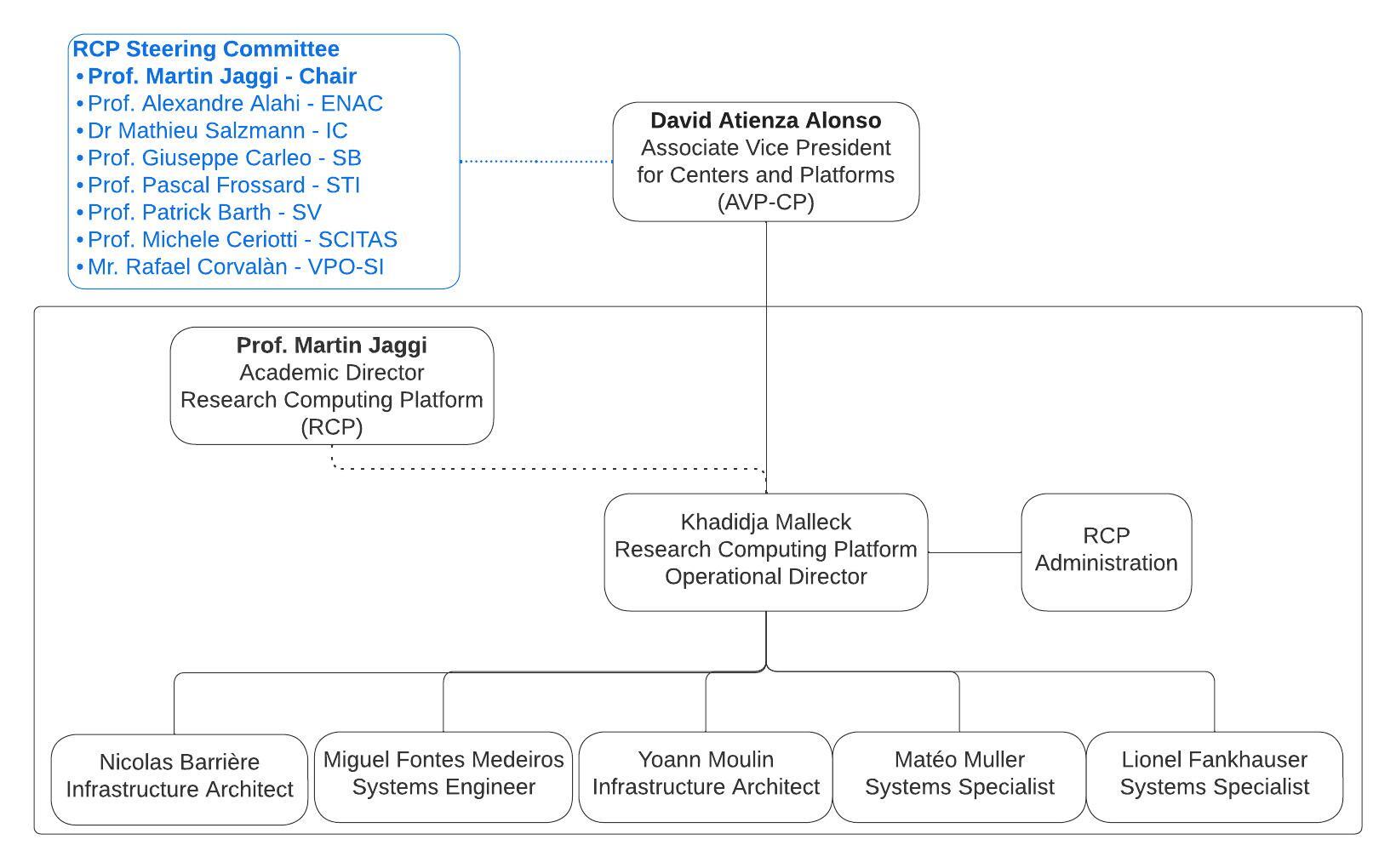 RCP – Governance Steering Committee : Martin JaggiChairDavid Atienza AlonsoAVP-CPAlexandre AlahiENACMathieu SalzmannICGiuseppe CarleoSBMichele CeriottiSCITASPascal FrossardSTIPatrick BarthSVRafael CorvalànVPO-SI