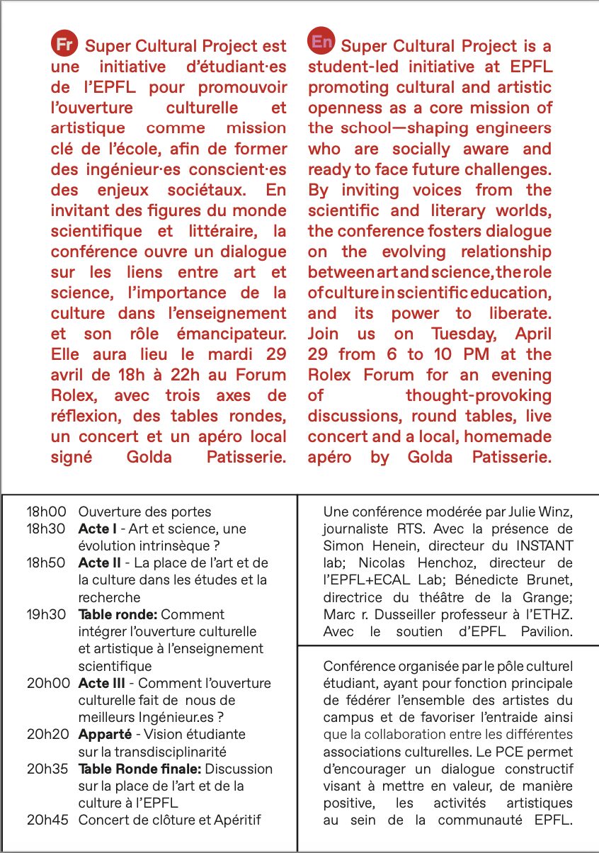 Conférence Art + Sciences, Forum Rolex – EPFL
