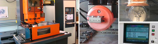 L’électro-érosion par fil découpe dans une pièce, à l’aide d’un fil métallique (électrode), un contour programmé.